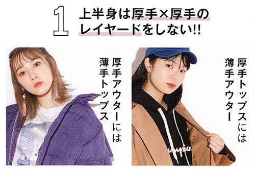 流行のレイヤードを試したいけど着ぶくれが怖いという人も。それはもったいない!