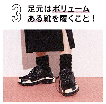 足元がきゃしゃだと対比的に脚や体が太く、顔が大きく見えるのでボリュームがマスト!