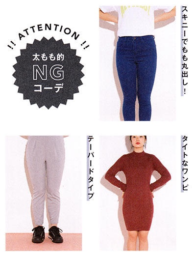 太ももを強調してしまうNGコーデは、腰や膝下の細さとの対比で