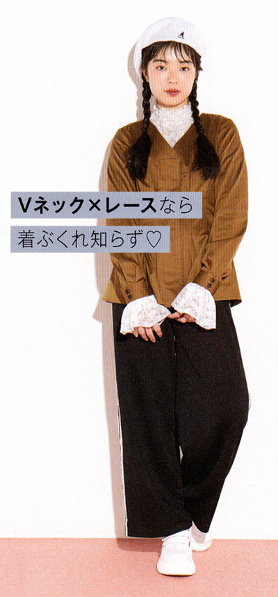 流行アイテムなので、ぽちゃってても気にならない、薄手のレースのインナーがたくさんあります♪ Vネックや厚手フーディが好相性。