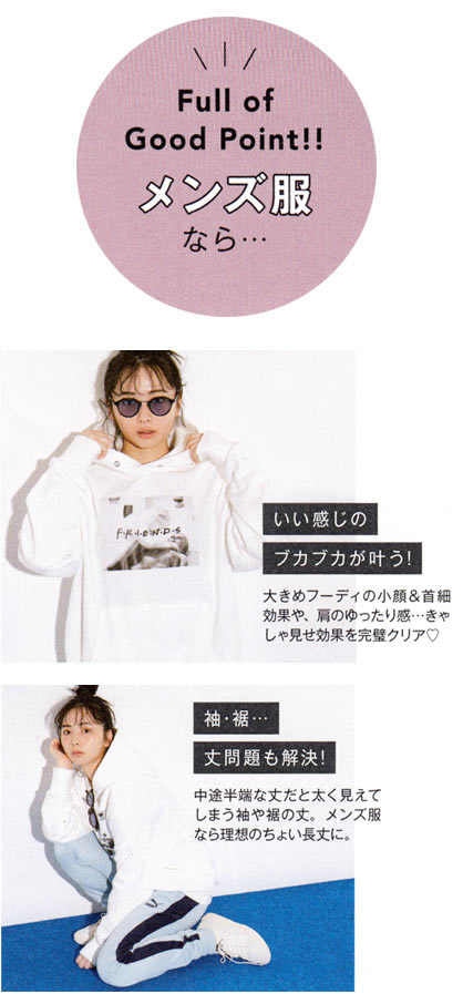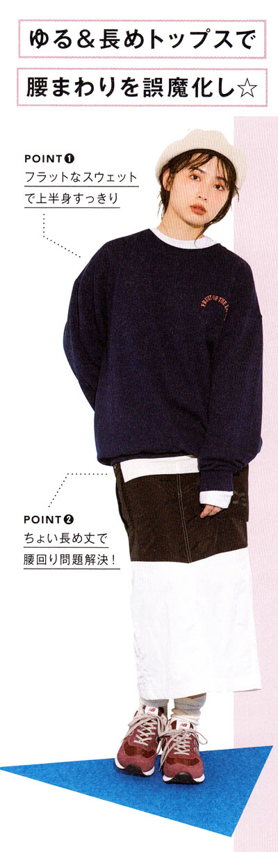 タイトスカートやスキニーで悩ましい腰回りシルエットをすっぽり隠す! メンズスウェット最高です♪