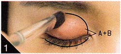 1.アイホールにAのクリームシャドウを目頭側からのせて。目尻側はシルバーラインを入れるのでうっすらとした仕上がりに。