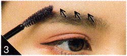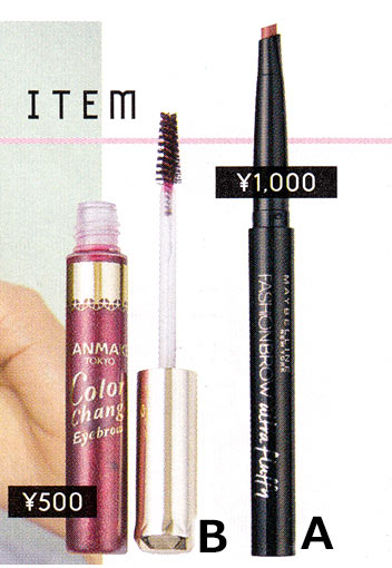 4.Dのラベンダーマスカラは上下まつ毛に塗ってニュアンスをプラス。眉はEのグレイッシュ系でソフトにして。