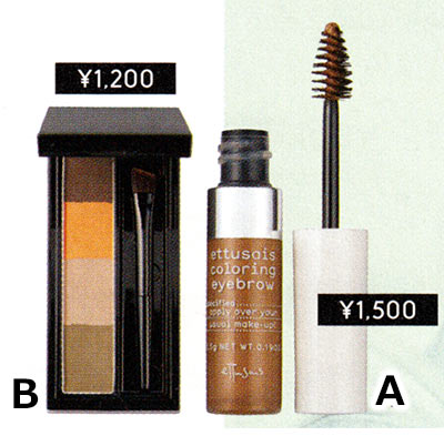 E.パウダーのような質感。インテグレート ニュアンス アイブロー マスカラ BR380 \800 / 資生堂