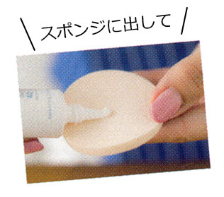 スポンジに日焼け止め乳液を含ませ、汚くなった部分をスッとなでて、汚れやファンデ溜まりを除きつつならす。UVカット&下地効果も復活!