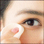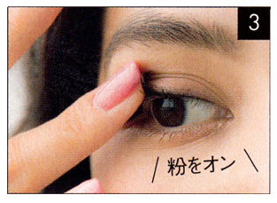 アイラインやマスカラが色移りしてパンダ目になったら、お粉で水分や油分をおさえながらレタッチして、再崩れを防止!