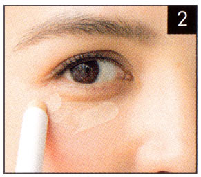 クマの影を跨ぐように筋状にコンシーラーをのせ、指で優しく叩きながら周囲になじませて明るくカバーする。