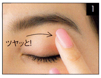 2.きらめきを含んだピーチピンクで目もとを明るく。