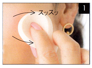 お直しは“日焼け止めスポンジ”で崩れた部分をならしてから!