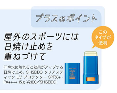額や鼻すじなどのTゾーン、頬骨やあご先など、顔の高い部分に日焼け止めを重ねて。スティックタイプなら3~4往復させるのが◎。