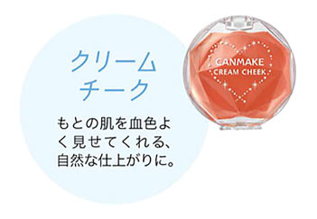 つけた瞬間から肌に溶けこみ、肌触りはサラサラ。アプリコットカラーなら、自然な血色感に。キャンメイク クリームチーク 05 \580 / 井田ラボラトリーズ