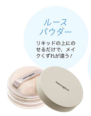 微細なパウダーでTゾーンのテカリや崩れを抑え、透明感をキープ。ナチュラグラッセ ルースパウダ -01 SPF40・PA+++ 7g \4,200 (パフ込み) / ネイチャーズウフェイ
