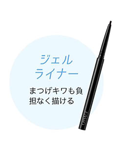 やわらか芯で濃密なラインがなめらかに描ける。ウォータープルーフ。ファシオ パワフル ステイ ジェルライナー 全2色 \1,200 / コーセー コスメニエンス