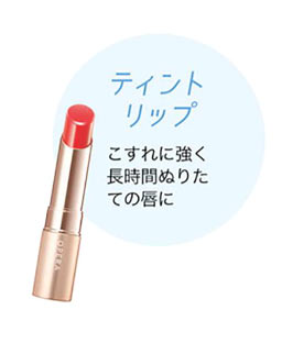 時間が経っても唇に色みを残す、ティントリップをひと塗り。上からリップクリゲームやグロスをのせても色もちそのまま。