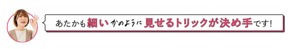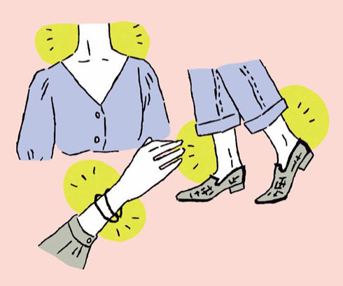 やせ見えの極意は、細い部分を見せることで全体をほっそり見せる効果を狙うこと。体の中でも細めの首元、手首、足首の3つの「首まわり」はいつでも見せる、と意識するだけでも印象はかなりスッキリ。