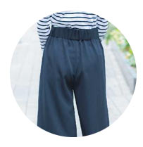 ウエストの過度なギャザーは下半身にボリュームを生むので大敵! 後ろだけにギャザーが入ったタイプなら、楽チン&スッキリ見えて◎。