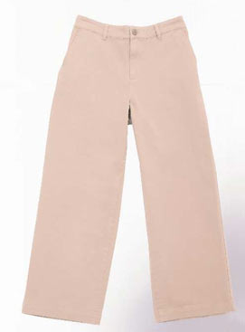 濃いめのベージュパンツは薄めの色に比べて着やせ度が上がります。ストレートタイプは着回しもしやすいですね。