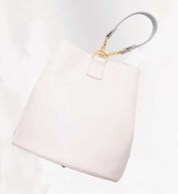 持ち手がグレーの白バッグは清潔感にあふれます。暗い色が増える冬こそ明るめ小物を取り入れて。