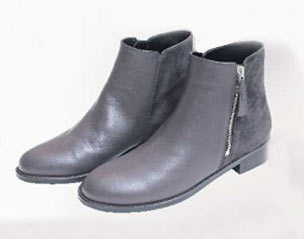 濃いグレーのショートブーツは後ろの部分がスエードの異素材ミックス。おしゃれ感がたっぷり出ますよ。