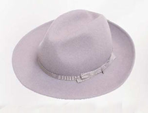 グレージュ(グレーとベージュを足した色)の中折れハットは、かぶるとたちまち様になります!