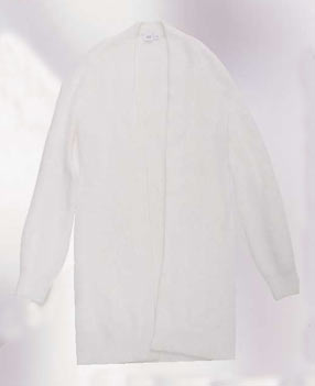 白いカーディガンは女性らしさ&清潔感を出したいときのお助け役。お尻や太ももがカバーでき、着やせ効果もあります。