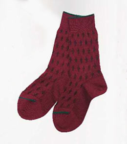 ネイビーのシャツと相性の良いバーガンディ(渋い赤色)の幾何学柄ソックスをポイント使い。カラーソックスがコーデを格上げしてくれます。