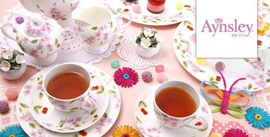 イギリス、スタンフォードシャーの地に生まれたエインズレイは、やはり200年以上の歴史をもつファインボーンチャイナの雄です。