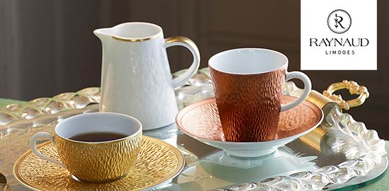 フランス・リモージュの陶磁器に心を奪われた、貿易商によって創設されたというアビランドも、フランスを代表するブランドのひとつです。他の名窯と同様、手技を駆使した繊細な絵柄は、19世紀の創業時から、審美眼の高い世界中の人々に愛され続けています。