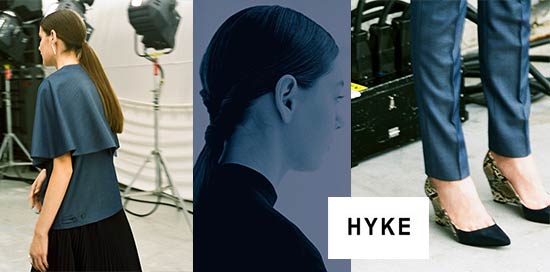 有名人ご愛用でインスタを賑わせているHYKEは、ワンピースやスカートの丈感がとにかく絶妙で、ミモレ丈やガウチョパンツも要注目のブランド。