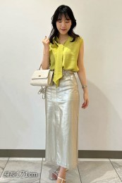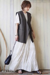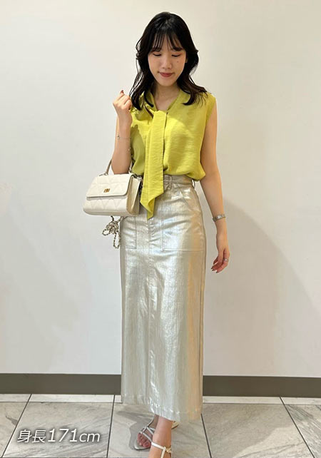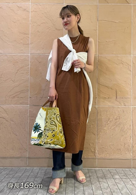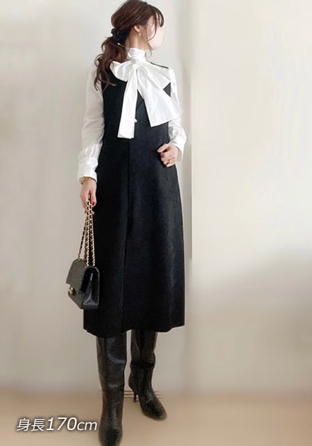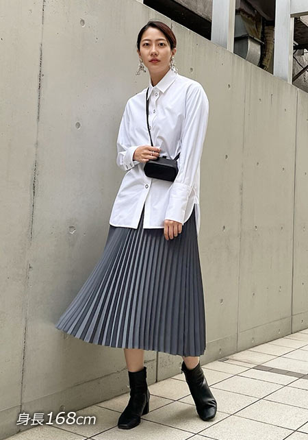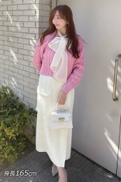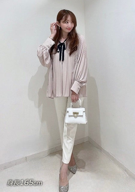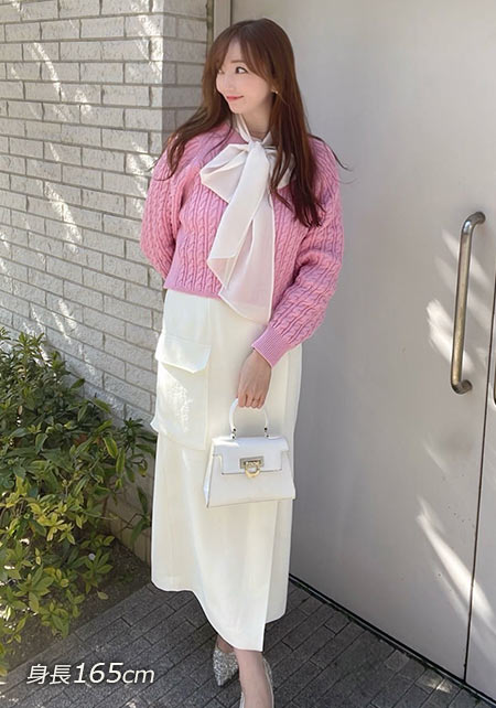 オンの日もオフの日もレディなエッセンスをプラスしてくれる今季人気のアイテム。モデルさんは165cmでフリーサイズを着用。