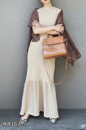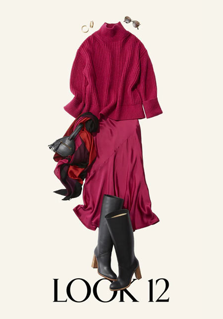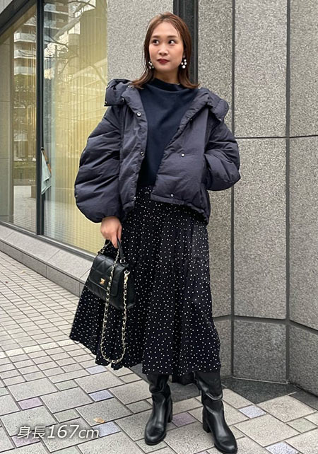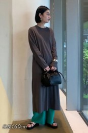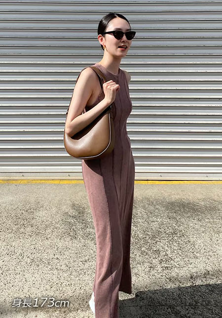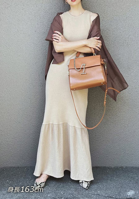 主張の強いニットマキシはSサイズの方には重たくなりがちでも、高身長の方ならバランスよく着れます。