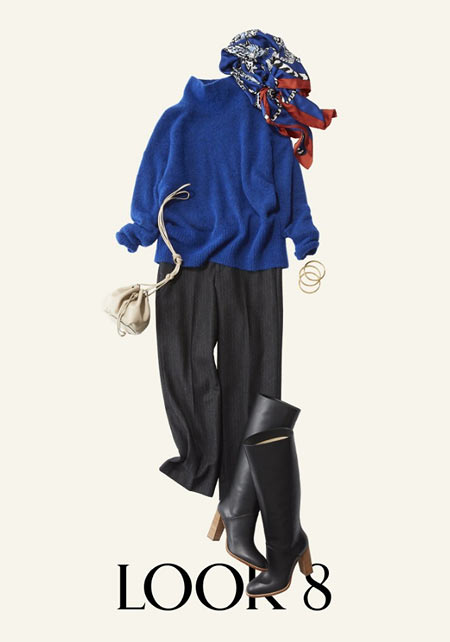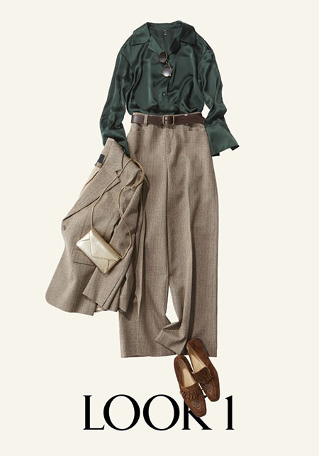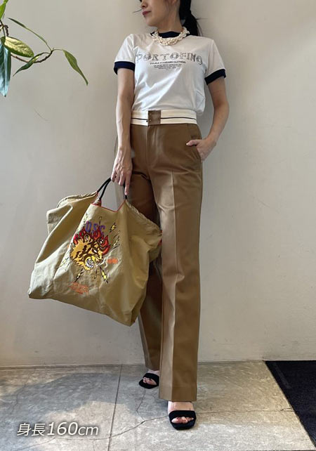 パンツと足元はすっきりしたものでメリハリをつけるとこなれて見えます。