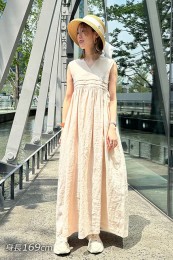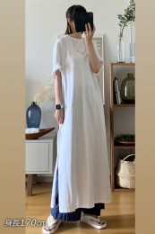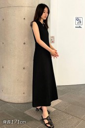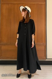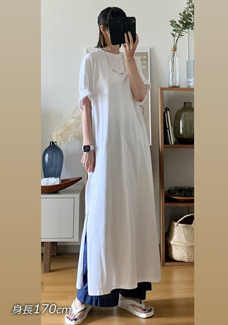 生地は美しい光沢を放つSUVIN COTTONをポロシャツによく使われる「鹿の子」で編み上げたもの。マキシ丈なのに軽やかで清涼感のある一着に。足元はパンプス・スニーカー・サンダルまで、どんな靴にも合わせやすいです。