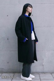 Iラインを強調するストレートのボディに、前後の身幅を広く取って「BIGシルエット」で仕上げたオーバーコート。