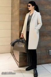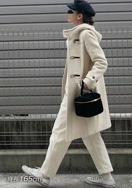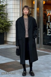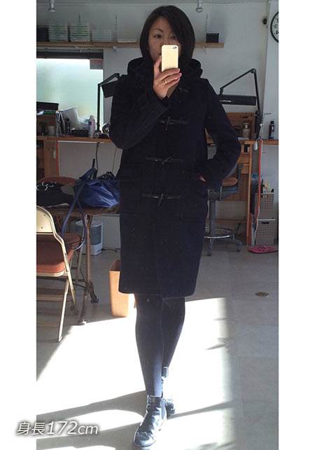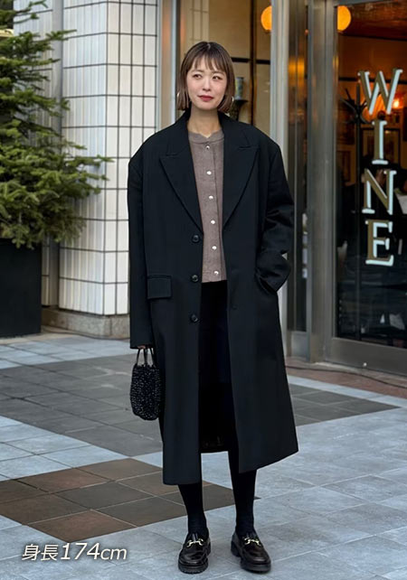 最大サイズXL(13号~15号)で、175cmくらいの女性の方にも似合うロング丈のオーバーコート。