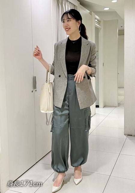 通勤など仕事用としてはもちろん、インナーにパステルアイテムを合わせれば休日用にも早変わり♪