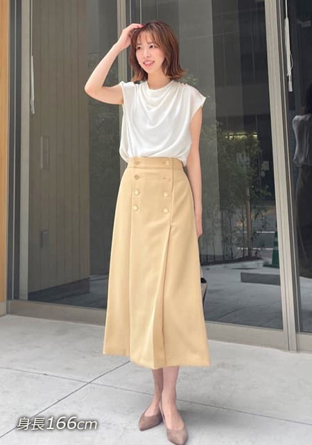 長身の女性芸能人も密かに愛用しているとウワサの、HYKE定番のミモレ丈スカート。