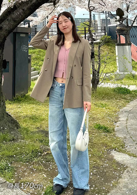 雑誌では、すみれさん(175cm)、中村アンさん(161cm)、絵美里さん(171cm)など、身長の高いモデルさんがよく着用しています。