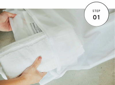 【B】タオルの上にのせて、クルクルと巻いて水分を取り除けば乾燥もスムーズ。