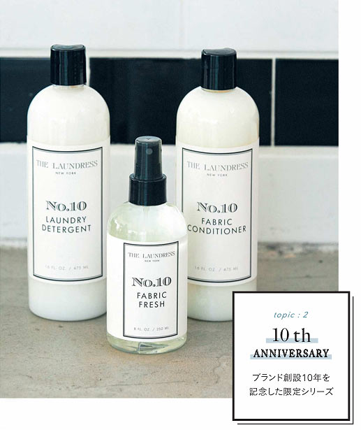 (左から)シグネチャー デタージェント No.10 475mL \3,600、ファブリックフレッシュ No.10 250mL \2,800 ファブリックコンディショナー No.10 475mL \3,200