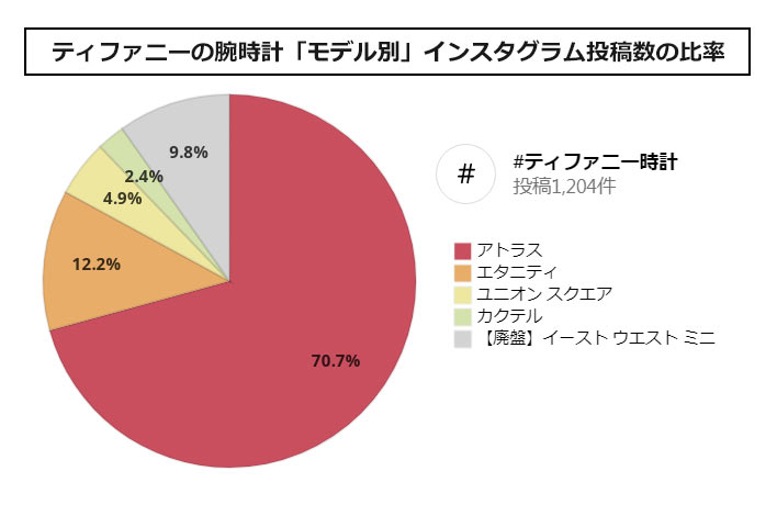 インスタグラムの「#ティファニー時計」1204投稿の中から、女性が本当に着用していた投稿、プレゼントされた投稿を元に集計し算出しました。