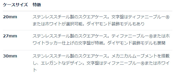 スクエア型ケースが特徴で、これはティファニーの1920年代のヴィンテージ時計から着想を得たもの。