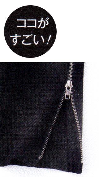 ガンメタ色のジップが大人っぽい。スリットとしてだけでなく、辛ロのアクセントに。