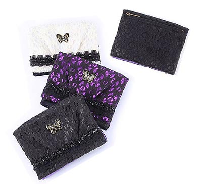 そこに光沢あるサテン生地やレースを合わせた、アナスイらしさがたっぷり楽しめるティッシュケースになっています。