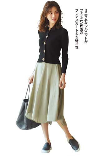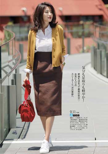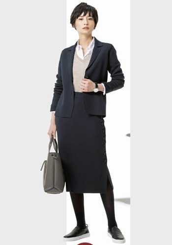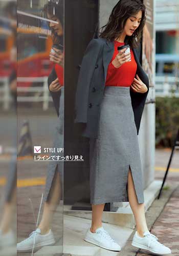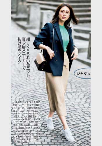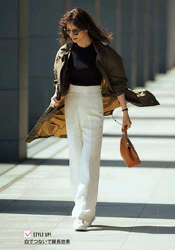 名脇役として力を発揮してくれるオールホワイト「スーパースター」。体にフィットするニット+タイトスカートだって邪魔をせず、スタイルアップの効果を高めてくれます。