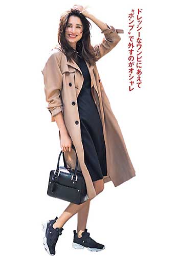 ハイテクスニーカーブームの火付け役「インスタポンプフューリー」。ドレッシーなワンピやトレンチに“あえて合わせて外す”のがオシャレ。