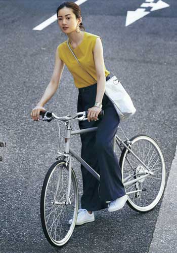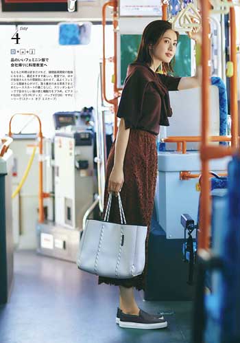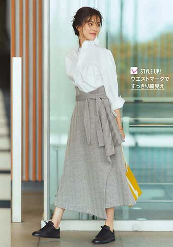 くるぶしが見える低いローカット。厚みと幅が小さく、ふくらんだフェミニンスカートと好バランス。通勤服はフェミニン系が多いというOLさんに。