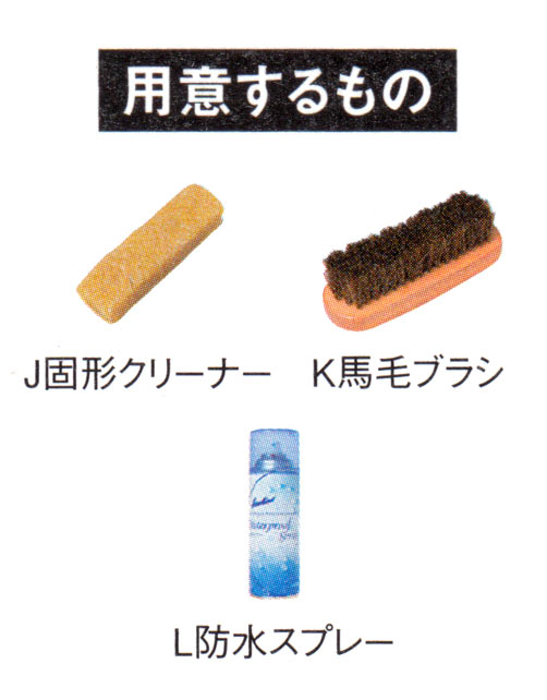 起毛の表面にクリームは厳禁。ブラッシングで汚れを落とし、整えていきます。