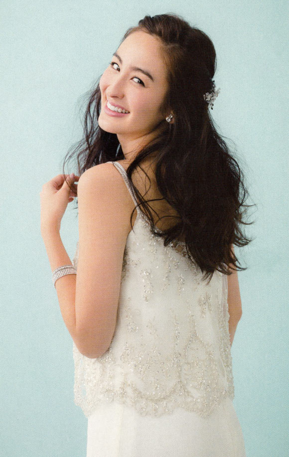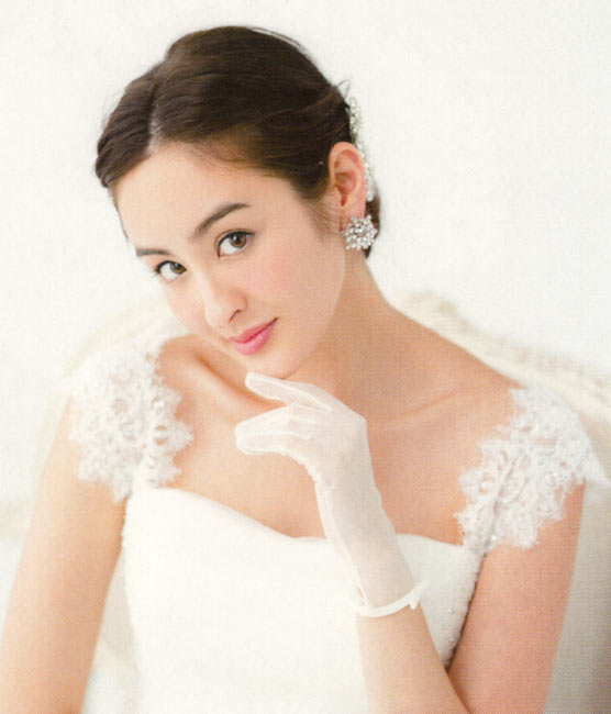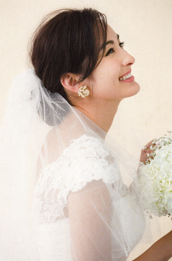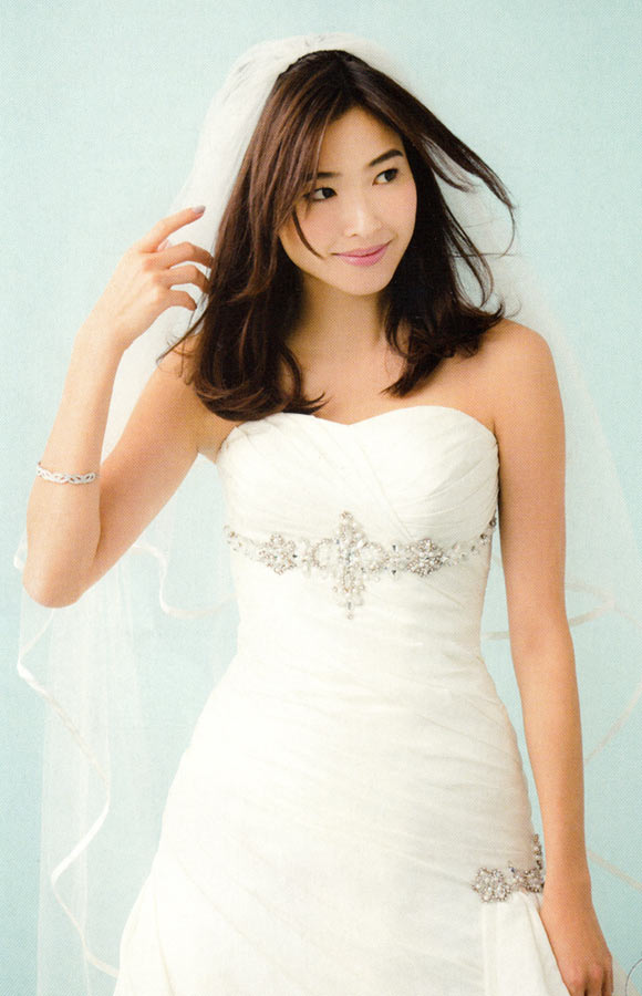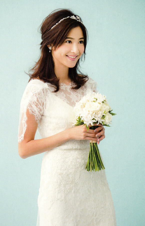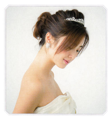 できれば、サイドは短めで、高さのあるティアラを選ぶのがベスト。ただ小ぶり型が旬の今季は、ティアラよりヘアで少しトップの高さを盛って、面長シルエットにします。おくれ毛は出しすぎると疲れて見えるのでバランスを見て。