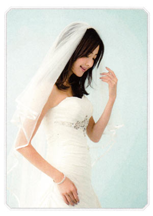 毛先に丸みの出る巻き髪にしてしまうと、頬のふっくら感を強調してしまう危険が。外ハネをメインに、毛先にシャープ感が残るゆる巻きにします。ヴェールや大きめのヘッドドレスをつければ、華やかさがUPできます。